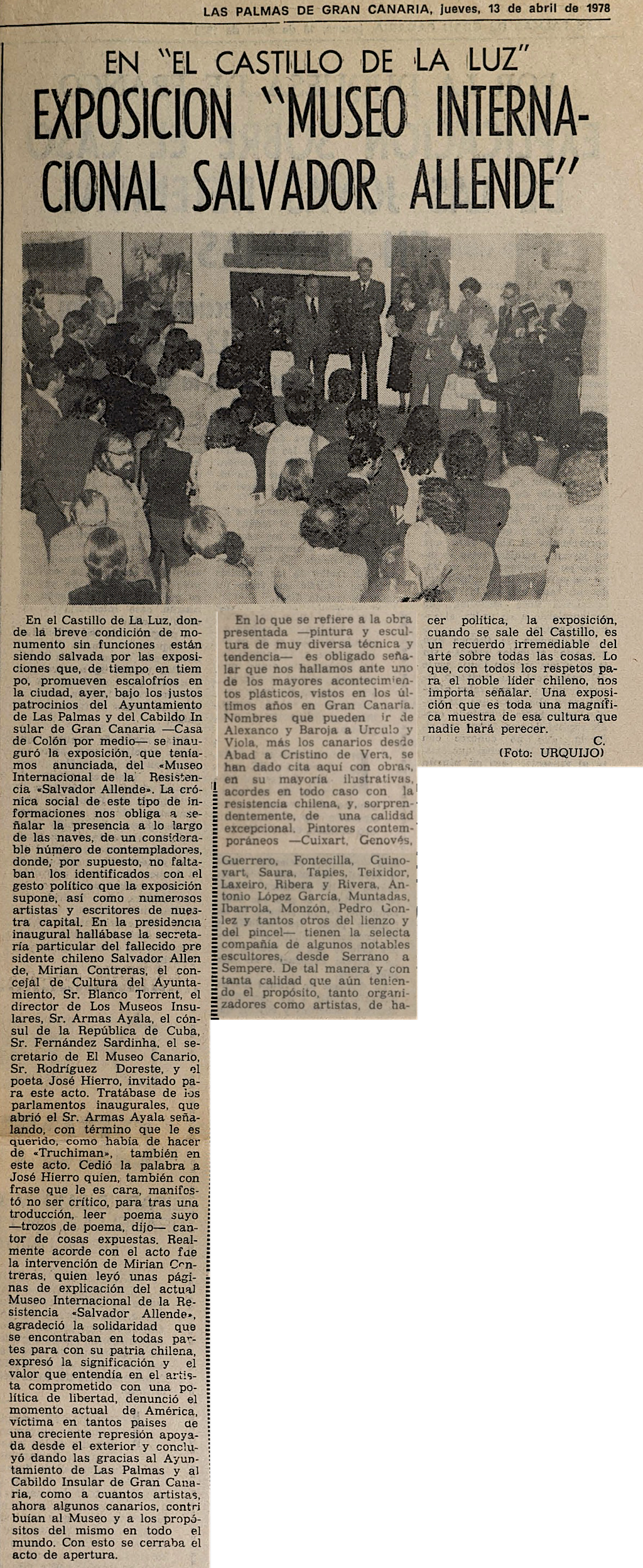 Artículo de prensa de Las Palmas de Gran Canaria, 13-04-1978